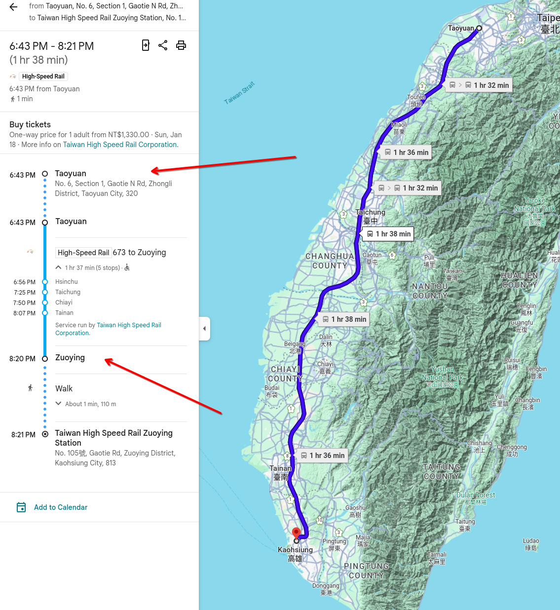 Step 2. Then get the HSR to Zuoying station